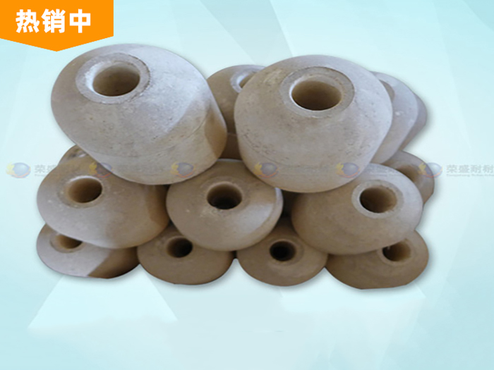 位于塞棒下端和水口磚呈嚴(yán)密配合的耐火材料質(zhì)磚。不澆注時(shí)它堵住水口保證不漏鋼。澆注時(shí)提高塞棒,使塞頭磚和水口磚產(chǎn)生間隙,鋼水從水口流出??刂迫舻母叩停烧{(diào)節(jié)鋼水的流出量。塞頭磚和棒芯間可用螺紋或銷子固定,分別如圖中a、b所示。塞頭磚可以是黏土質(zhì)、不燒高鋁質(zhì)及焦油浸漬的不燒高鋁質(zhì)磚。